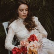 One of the features of the mood board that captured my imagination was the oversized sleeves on some of the inspirational bridal gowns. The dress chosen for the shoot from Love Ellie Bridal, had similarly modern voluminous sleeves, a current bridal trend which I adore, on a sleek columnar gown.